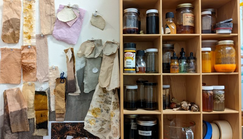 Cindy: I left (Grizzly) maybe about five years ago. But I was a long-time member and some of our collaborations had key people who I just love to work with. I’m going to find a way to be where they are at! Mary Smull was part of Grizzly Grizzly with me, and we were part of the CSA Art Philly together. Now, besides being close friends, (we walk twice a week,) we do Dye Club together. [Mary] and Kelly Cobb, who is from the textile/fibers world and teaches down at UDel – and Miriam Singer, a great artist who does screen-printing and is a member of Space1026; and Tamara Suber, who’s at UPenn, and is a shepherdess. Next Dye Club meeting, I think that Angela McQuillan might join us- she’s not only an amazing artist, but also has a background in chemistry. Everyone’s bringing their own set of questions to it, and we just have different experiments.