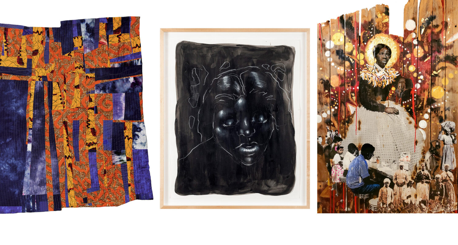 Three strong voices of African American women artists make an excellent exhibition at Main Line Art Center. “Speaking in Tongues,” curated by Michael Clemmons, presents Toni Kersey’s colorful quilted wall works, Patricia Reneé Thomas’s chalk drawings on black-painted paper and Lavett Ballard’s multi-media collages. All the works speak to the importance of the Black experience and to the passion and drive these artists bring. No one artist stands out above the others, and in fact, the show is three-part harmony in three diverse voices. Patricia Reneé Thomas’s works haunt. The black-painted backgrounds onto which the artist draws faces and bodies in delicate assured lines speak to contemporary issues of the Black woman’s body, who owns it, whose depictions matter. They are visceral and beautiful and questioning. Lavett Ballard’s collages are notable for their great choices of appropriated imagery and for the dizzying accumulation of stenciling, gold leaf and paint to create icons both respectful and exhortatory. Toni Kersey’s quilted wall works are sleepers, slow works in fast company. They grew on me, as they held the walls like gorgeous maps or cloaks of ancestors whose stories lie buried in the cloth and thread. “Speaking in Tongues” is open until Feb. 24, 2023. mainlineart.org