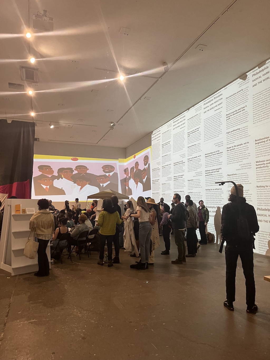 Many of the installations and exhibits at this event centered on photography or archival work and explored similar, interrelated themes. One photo exhibit on the wall, titled “What Heals You” by sex educator Yema Rosado and curator Zissel Aronow, involved portraits of many community workers on 35mm film that lead to QR codes with more information on answering these three questions: “If you frame your work as an offering, where do you give from,” “what heals you,” and “what has Philadelphia taught you?” The portraits involved hazy, peachy hues over a smile or a straight gaze in an environment that best represented the energies of people from diverse backgrounds: growers, witches, weavers, researchers, teachers, archivists, educators, cultural workers, land stewards, and performers. In a QR code link to an audio file of each of their interviews under their peering portraits, each practitioner opened up on the most intimate relationships with their work.
