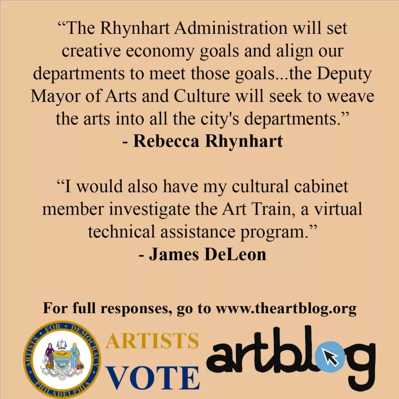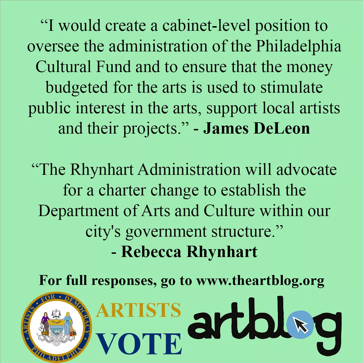 Artist ParticipationTwo candidates responded: Rebecca Rhynhart and Jimmy DeLeon.
