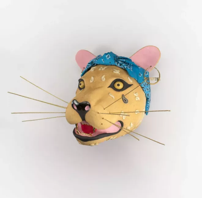 Born and raised in El Paso, Texas, George Rodriguez creates large-scale decorative ceramic sculptures addressing his identity and community as a Mexican-American Artist. For In Unison, Rodriguez constructs a bridge between past and present through symbols and imagery tied to personal histories, collaboration, and community. His work takes the forms of grand guardians, animals, tomb sculptures, and shrines depicting community members as ancient relics.