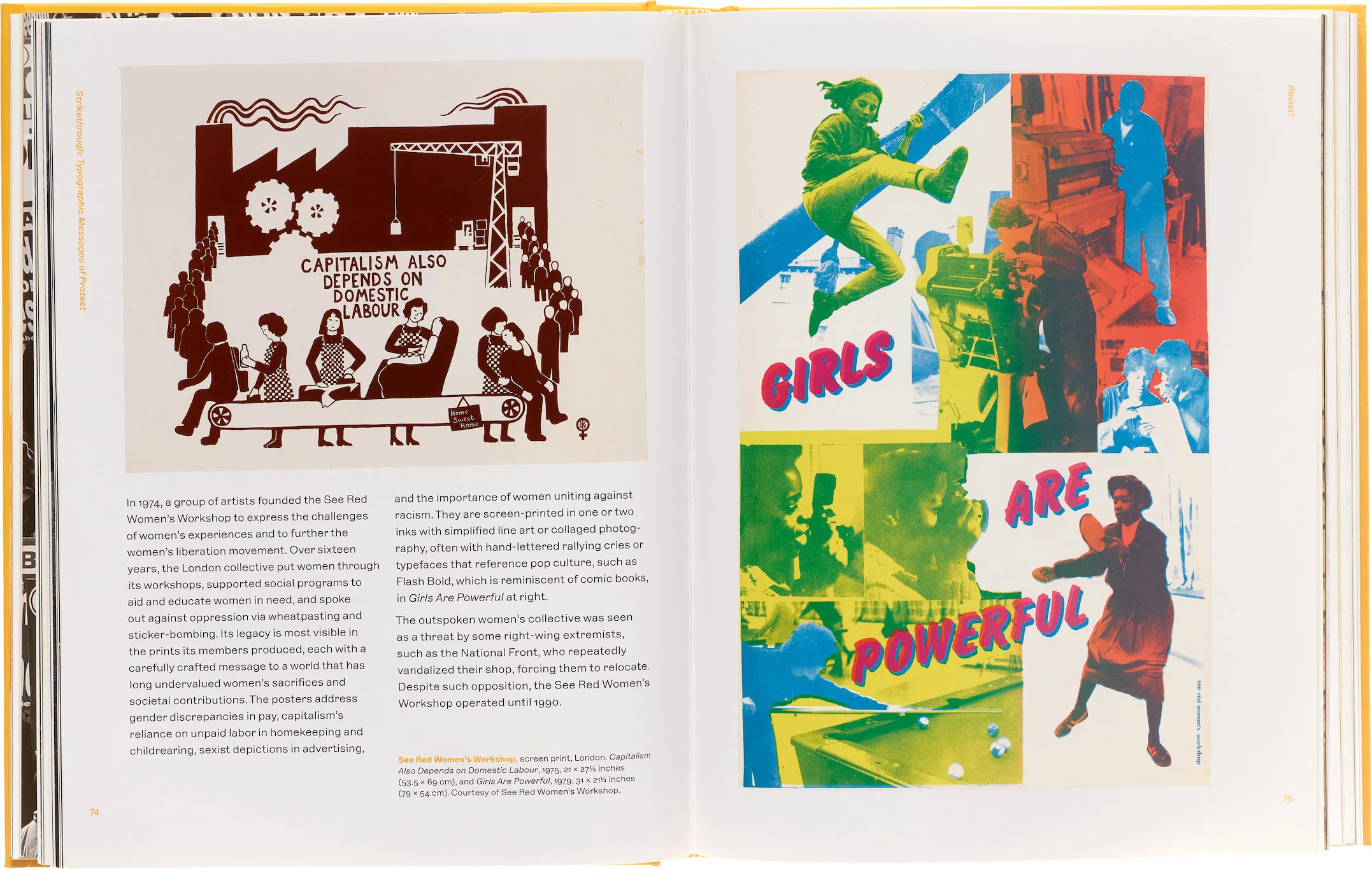 The book includes illustrations and typographic designs by well-known artists and designers, including Emory Douglas, Corita Kent, Tibor Kalman and Ben Shahn, as well as the anonymous designer of the now-iconic placards (“I AM A MAN”) carried by Memphis sanitation workers in 1968, and others unknown. Designs include protests of slavery, racism, war, nuclear weapons, workers’ exploitation, women’s rights, financial inequality and gay rights. While the illustrated works emphasize the United States, with particular consideration of BIPOC and gay designers and subjects, they also include work from Mexico, Egypt, Brazil, France and elsewhere.