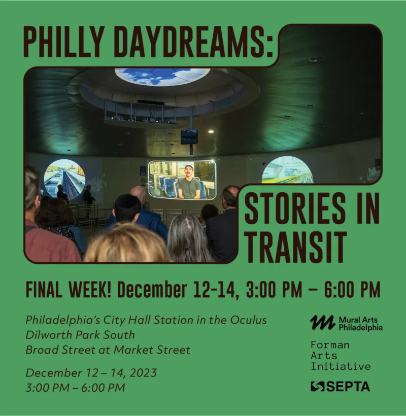 Hope you are well! Iʻm so delighted to let you know that my public art project, “Philly Daydreams – Stories in Transit.” is going to be installed at the Oculus for 3 days in December. As part of this project I had created a multi-channel installation at the Oculus – the subway station under City Hall, below Dilworth Plaza.