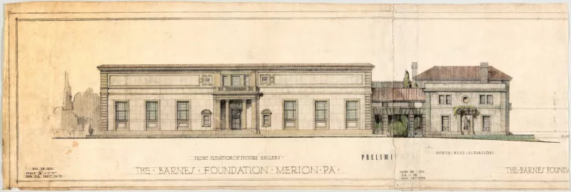 The exhibition includes correspondence between Albert Barnes and Cret, sketches, and ephemera associated with both structures. It is made possible through loans from the Barnes Foundation, the Athenaeum of Philadelphia, the University of Pennsylvania and the Philadelphia Museum of Art.
