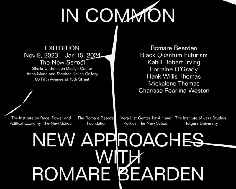 The exhibition In Common: New Approaches with Romare Bearden is up through Jan. 15, 2024, at The New School, 66 Fifth Avenue at 13th Street. It’s kind of stunning, I think, with 20+ works by Romare Bearden and largely new pieces by Black Quantum Futurism, Kahlil Robert Irving, Lorraine O’Grady, Hank Willis Thomas, Mickalene Thomas, and Charisse Pearlina Weston.
