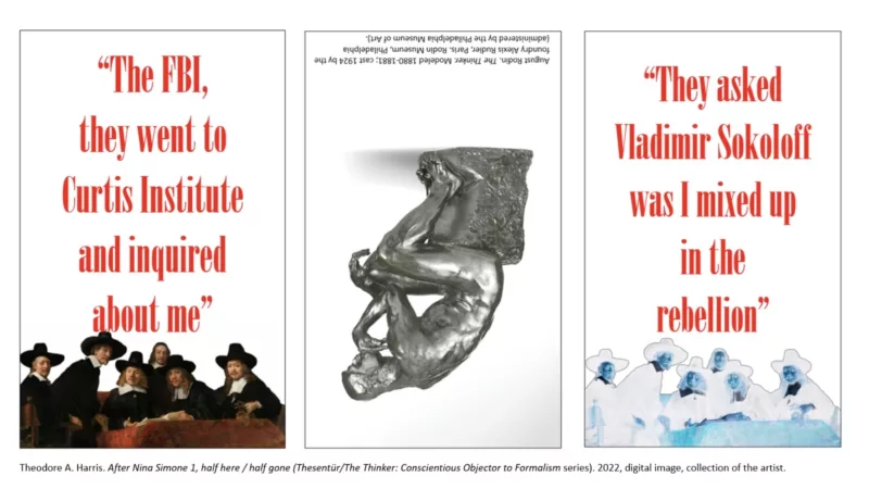 Nov. 7-Dec. 20, 2024: Theodore A. Harris, Thesentür/The Thinker: Nina Simone and the Politics of Music, Center for Emerging Visual Artists (CFEVA). Opening Reception: Thursday, Nov. 7; exhibition catalogue available. Website