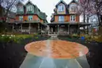 Rachel Hsu’s proposal, her first-ever public artwork, stood out for its innovative blend of public art and wellness, and potential for cultural exchange. Inspired by reflexology footpaths in Taiwan’s public parks, the artwork invites the public to embark on a tactile and meditative journey. Visitors are encouraged to remove their shoes before traversing an undulating surface of river stones embedded in a six-foot-diameter circular platform. An adjacent curved seating element creates a space for repose and reflection, offering an escape from the fast pace of urban life. This grounding, restorative installation encourages us to slow down and be mindful of our bodies in space. It gives us the opportunity to focus on the natural environment surrounding the work and make a physical journey that connects emotional endurance with physical experience.