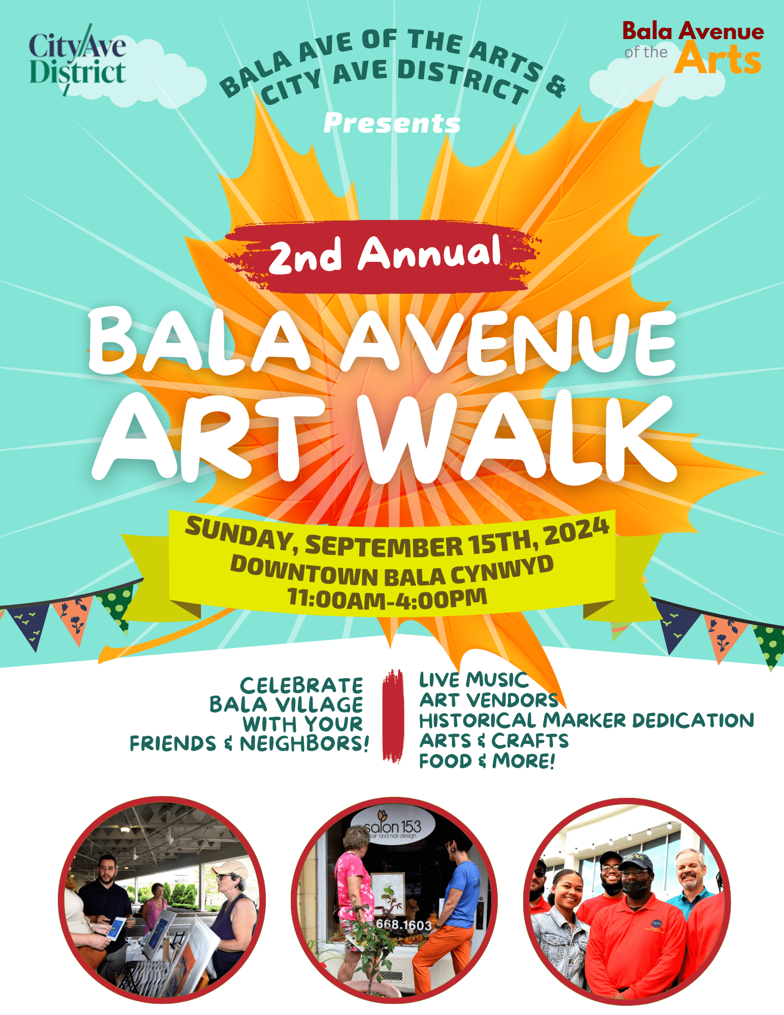 Open Call for artist vendors – Bala Avenue Art Walk Sept. 15, 2024, 11am-4pm; DEADLINE TODAY! JULY 30, 2024 – Market curated by Art Star