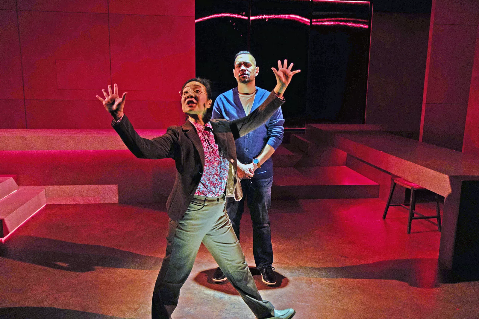 Billed as a satirical play inspired by real-life cases of Chinese Americans targeted for espionage, the play centers on a mathematics professor working with prime numbers described as Quixotic primes – at an unnamed US academic institution. The professor’s department chair is also of Asian descent, although not Chinese, and they come under increased scrutiny as the play progresses. The set design struck a balance between brutalist prison and chic institutional modernism.