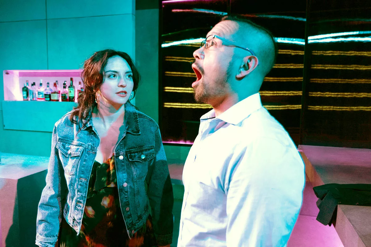 Madeleine Garcia played Valeria, a graduate student in mathematics and Professor Qiu’s TA. Valeria is written as simplistic and suggestive, expressing anxiety at a dinner, which may or may not have been a date with Professor Qiu. Professor Qiu is unable to see the female characters with any complexity and is only able to express hubris and contempt for their world in an effort for self-preservation. Yet, when given an opportunity to take advice from a male bartender played by David Pica, the professor readily accepts, leading him to make a consequential decision. The women in his life are afforded no such consideration.