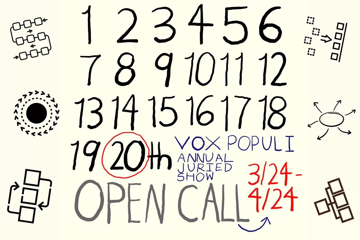 We’ll put in the link to that straightforward application. The annual juried show at Vox is always sort of a must-see show. You have to see it if you’re interested in art in the alternative culture in Philadelphia. It draws from all over the country. Not only just Philadelphia, so I don’t think international, but I may be wrong about that. They may have had international artists who heard about it. You know, because there’s the grapevine. And people do hear about things if they’re in the grapevine network.